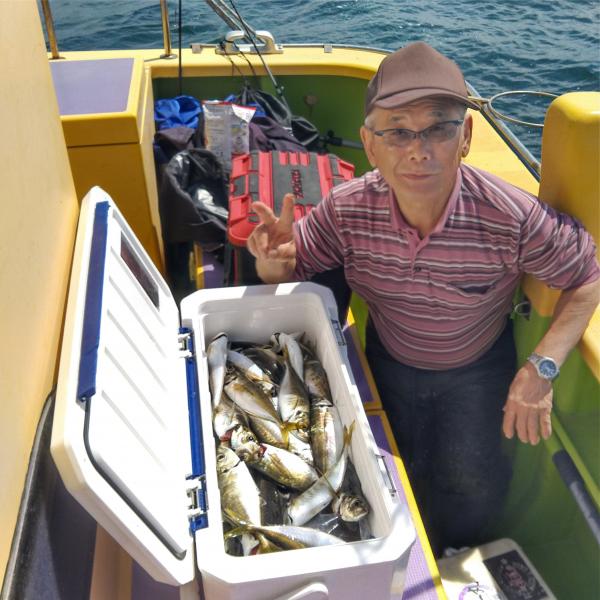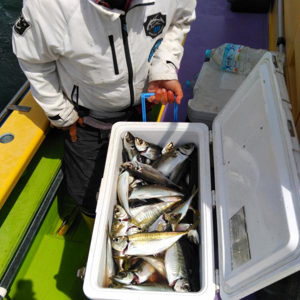 朝一からアジの食い良く、良型混じりダブルやトリプルもあってスタートから絶好調。最後まで移動もなく食い続いてクーラー満開の方も多くバッチリお土産になりました。