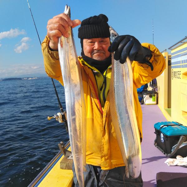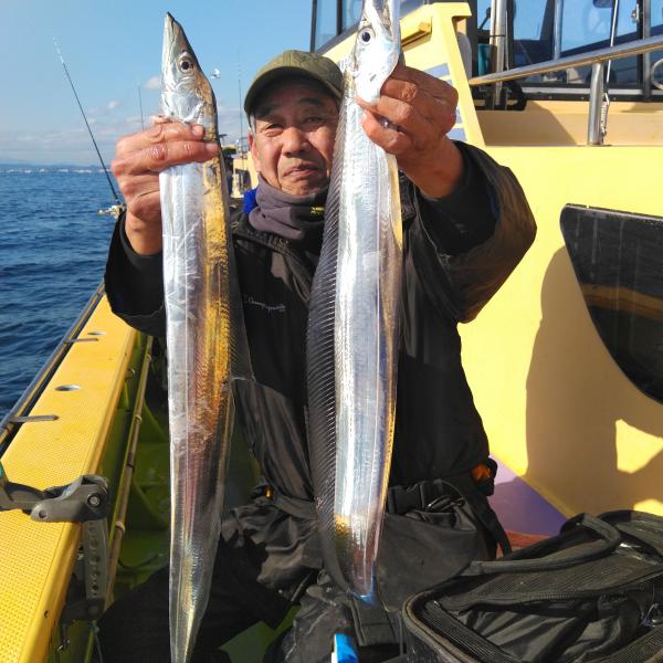新年初日は朝から晴れていい日並みです。タチウオの反応も広範囲に見れてスタートからアタリ出ました。派手なアタリはありませんが、コンスタントに型が見れて大流しで楽しめました。ほとんどの方が15本前後で皆さんお土産になりました。